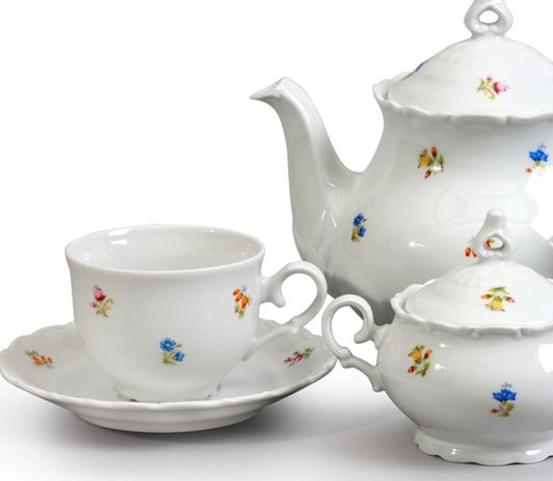 Elegantná biela kávová súprava s pekným motívom drobných farebných kvietkov. Žiarivo biely český porcelán bude ozdobou vašeho stola pri bežnom kávičkovaní, ale takisto pri slávnostných príležitostiach. Na bielom obruse pôsobí súprava jemne a vzdušne. Súpravy Ophelia majú povrch porcelánu s reliéfom, to znamená, že nemajú hladký povrch porcelánu, ale sú s reliéfnym vystúpeným vzorom - krásny porcelán našich mám a babičiek.